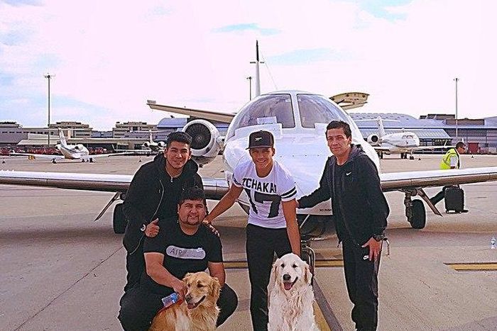The Chilean who is a known dog-lover posted a photo of himself and his dogs about to board a private jet