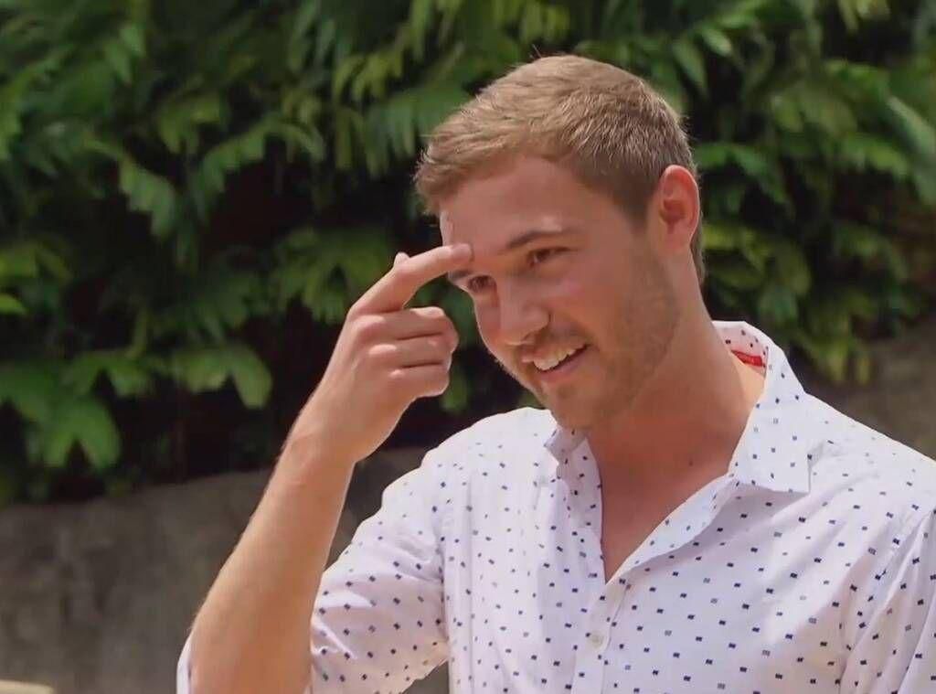 Pilot Pete's Busted Face On the current season of The Bachelor, pilot Peter Weber showed up on an episode with a bandage on his face . From what? Well, he had a run-in with a golf cart, and a glass ended up in his forehead. He then tried to play it off to the women that he was injured fighting a bear. ABC