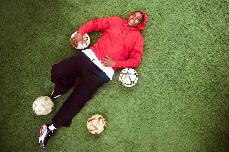 What begins as a playful challenge thrown by one of the players to the hooded figure quickly unfolds into a display of masterful skill, as Oshoala reveals herself through her effortless ball control, confidence, and precision.