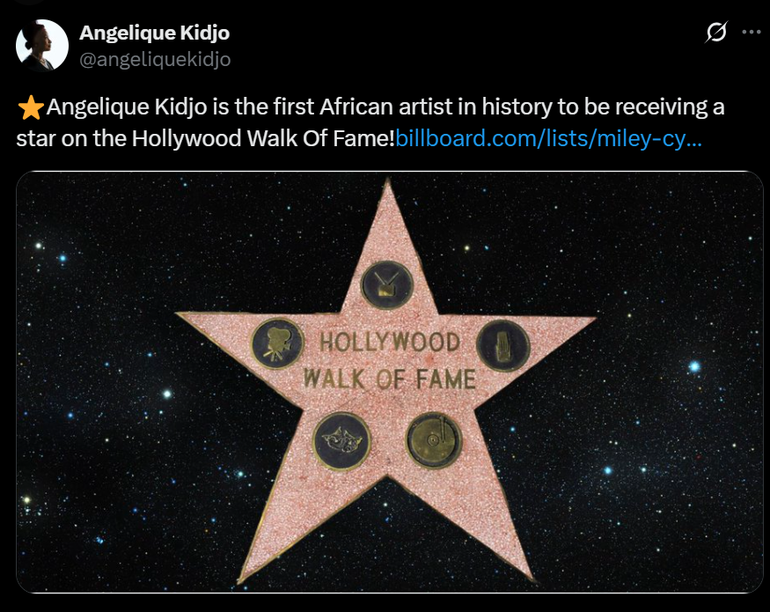 Angelique Kidjo becomes first African artist to receive a Star on Hollywood Walk Of Fame