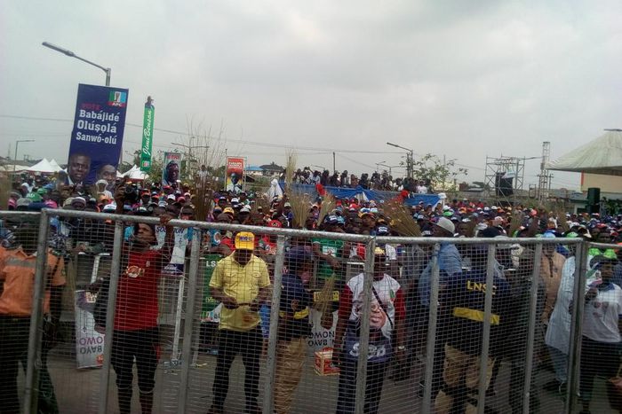 Popular Fuji musician, Alhaji Wasiu Ayinde, and some members of Nollywood entertained the crowd at the rally.