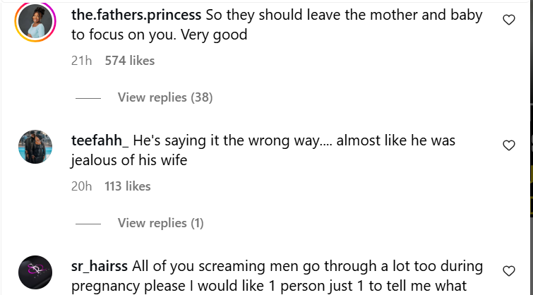 Content creator Solomon Buchi, on the other hand, defended the man’s point, saying that men also face emotional and mental strain during pregnancy.