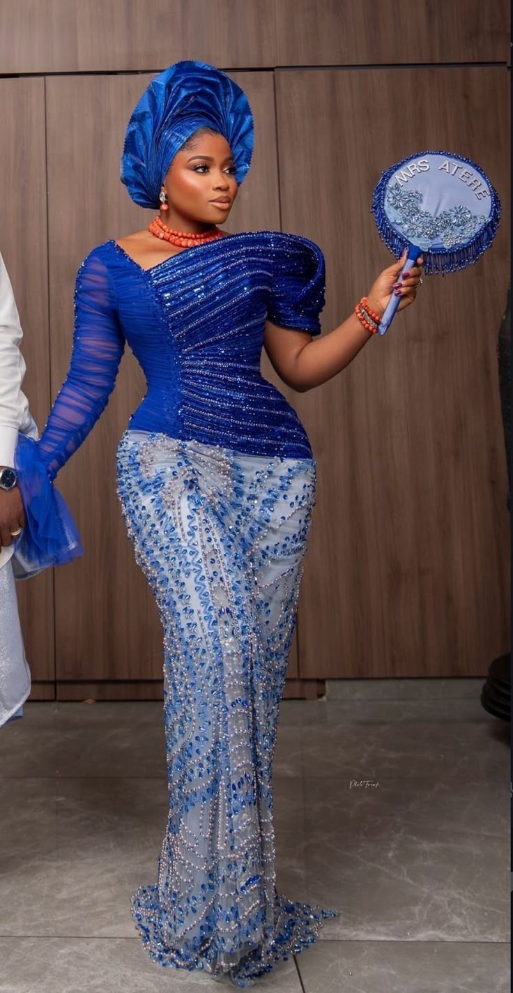 Blue lovers, this one’s for you! The soft, airy vibe of sky blue blends beautifully with the commanding presence of royal blue. This combination is versatile, plus, it works beautifully across different fabrics, from Ankara to lace and silk.