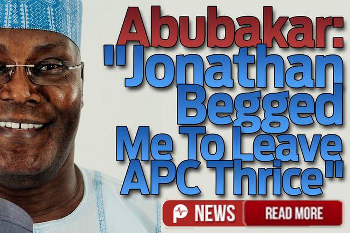 Former Vice President, Atiku Abubakar has said that President Goodluck Jonathan pleaded with him on three separate occasions to leave the All Progressives Congress (APC) and rejoin the Peoples Democratic Party (PDP).