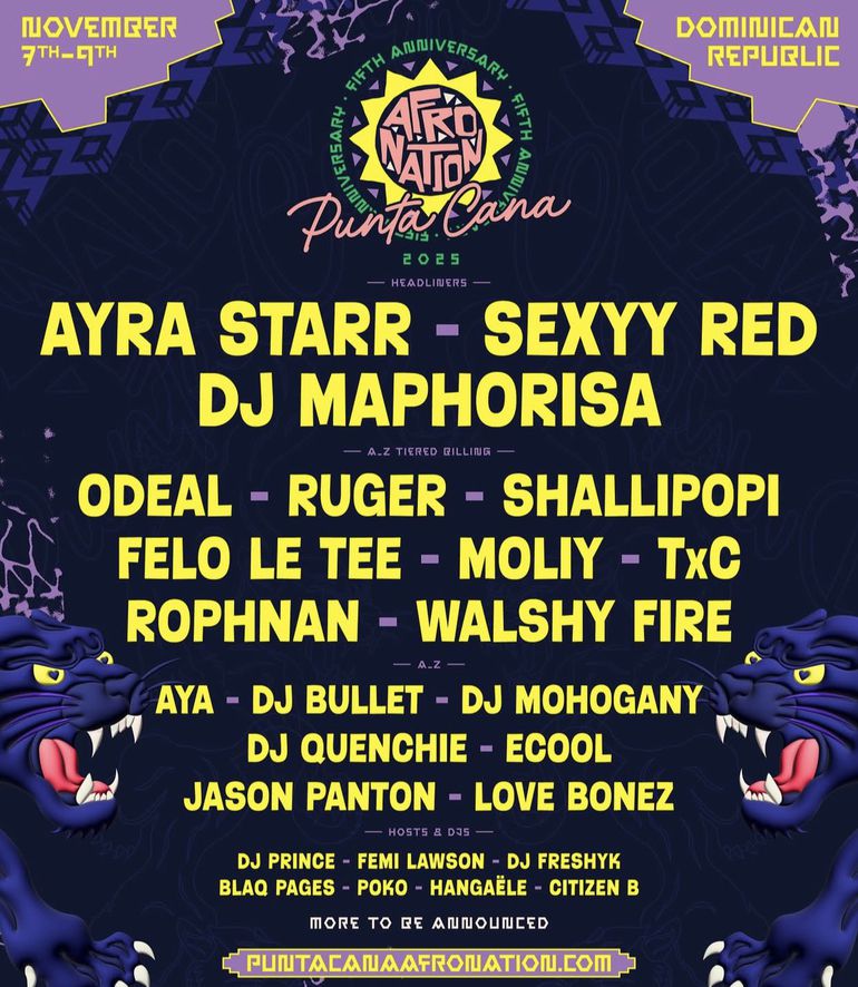 The festival will take place in Punta Cana, Dominican Republic, from November 7–9, 2025. Other Afrobeats stars scheduled to perform include Shallipopi and Ruger.