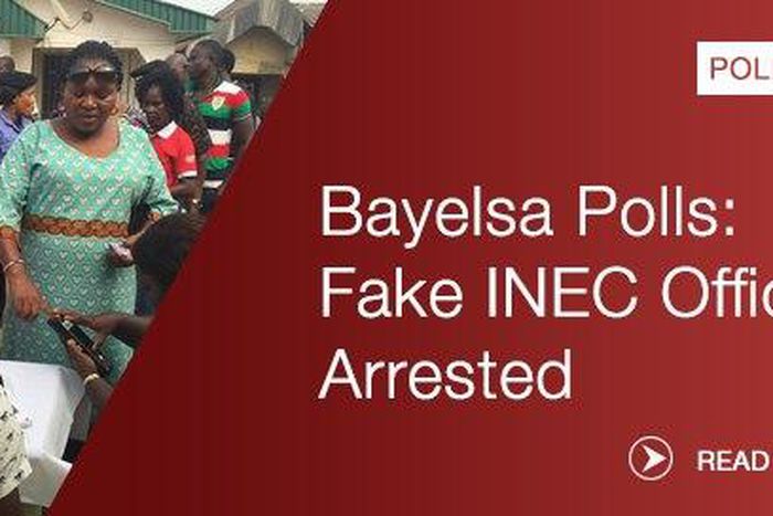 There are reports that a fake official of the Independent National Electoral Commission (INEC) has been arrested in the Bayelsa Supplementary polls on Saturday, January 9, 2015.