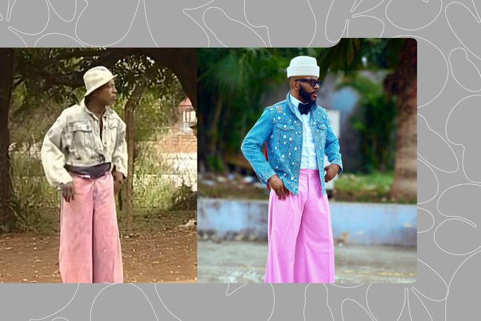 1. The Osuofia-Inspired Denim & Pink Trousers Outfit