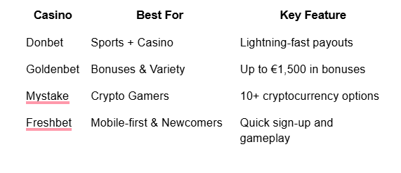 • Ideal For: Sports bettors and crypto users looking for fast-paced, unrestricted gameplay.