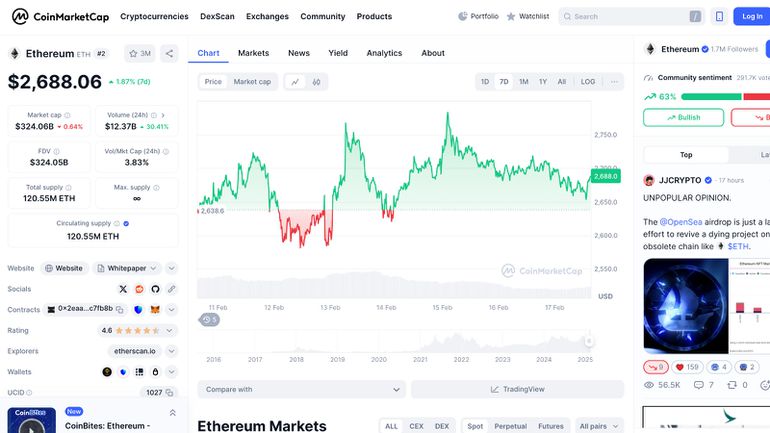 Chart of Ethereum’s price movement over the past week from CoinMarketCap