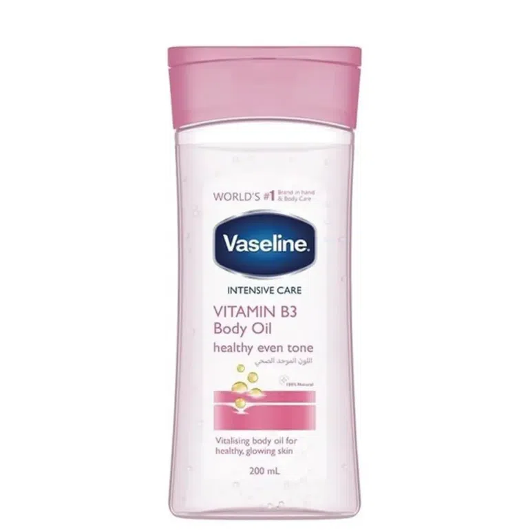 Vaseline vitamin B3 body oil enhances your skin's texture, leaving it soft, smooth, and naturally radiant. It locks in moisture, preventing dryness, and helps to maintain your skin’s natural hydration without any greasy residue. Moisturizers containing Vitamin B3 are known to repair skin cells, prevent water loss, and retain the skin’s moisture content.