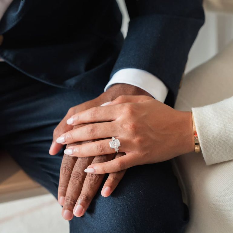 The photo showed two intertwined hands resting on his knee, his fiancée’s engagement ring catching the light.