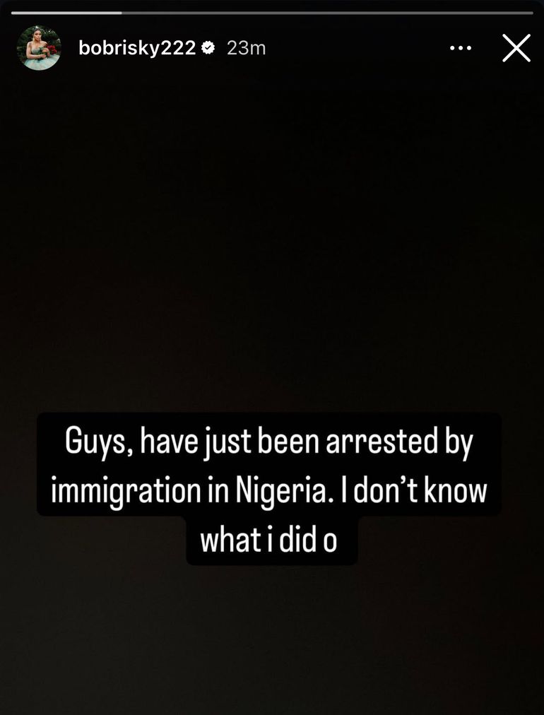 Controversial Nigerian socialite Bobrisky has announced that he was arrested by immigration officials shortly after returning to Nigeria, just five months after leaving the country for his "sanity and health."