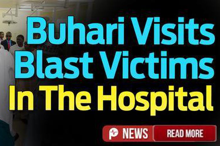 President Buhari was at the National Hospital, Abuja, to see some of the survivors of the multiple blasts that went off in the Federal capital, on Friday, 2nd October 2015.