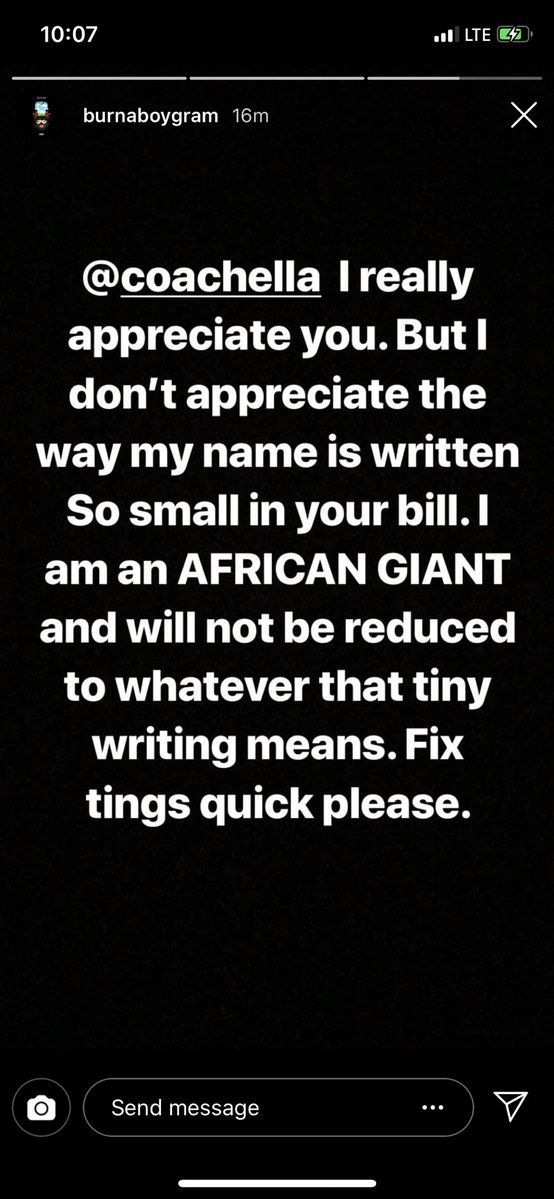 When the Festival organizers listed his name in small font, he took to social media and declared: “I am an AFRICAN GIANT and will not be reduced to whatever that tiny writing means.”