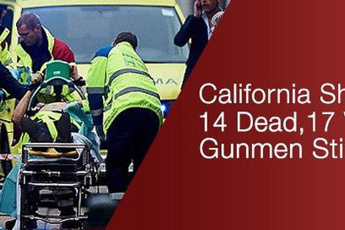 As an intense manhunt for up to three suspects ensued, San Bernardino police reported one "suspect down" in an exchange of gunfire with officers but did not immediately confirm whether the individual was connected to the shooting.