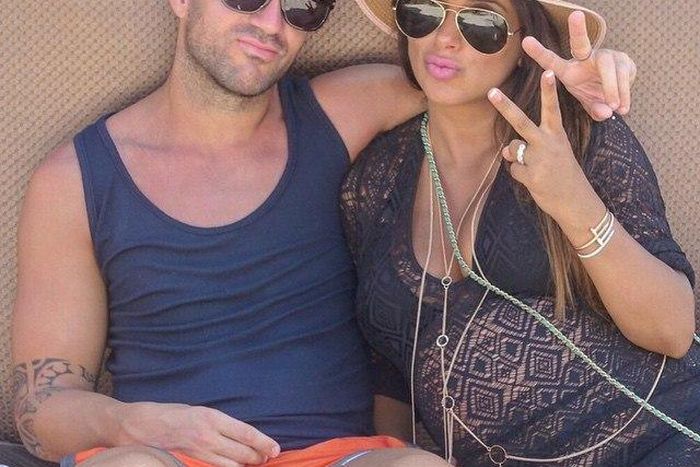 The couple, who are parents to two-year-old daughter Lia, posed for a photograph as they chilled out on a sun lounger.