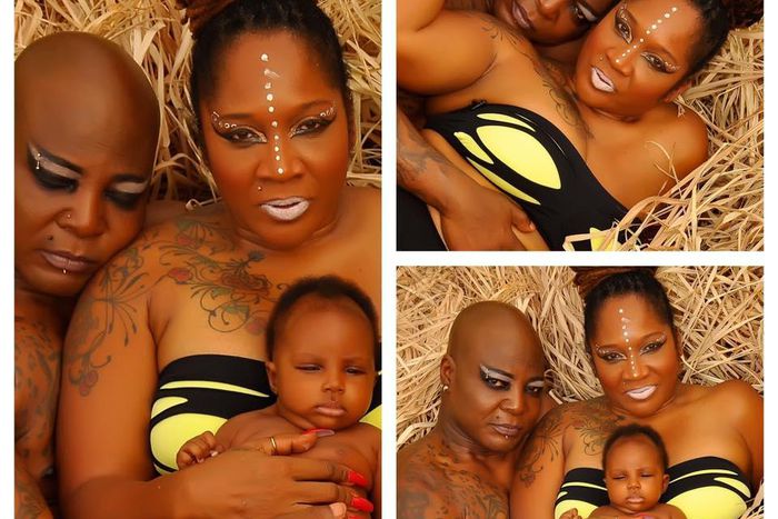In the pictures, Charly Boy and Lady D channel African royalty with their twist of weirdness added to it. In one particular picture they channel Adam and Eve in the garden of Eden.
