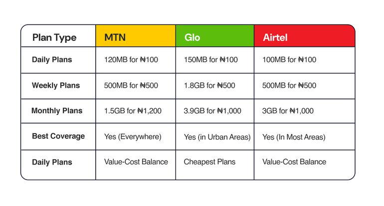 Light users: 100MB for a ₦100 daily plan is perfect for checking emails or WhatsApp.