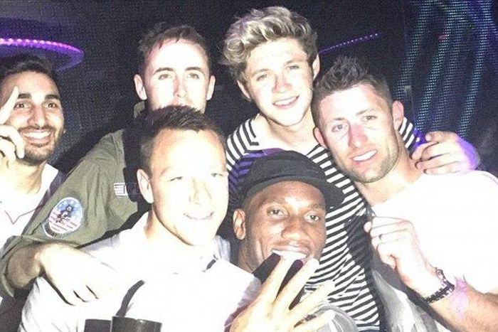 Chelsea players, John Terry, Didier Drogba and Gary Cahill were pictured partying with One Direction star, Niall Horan.
