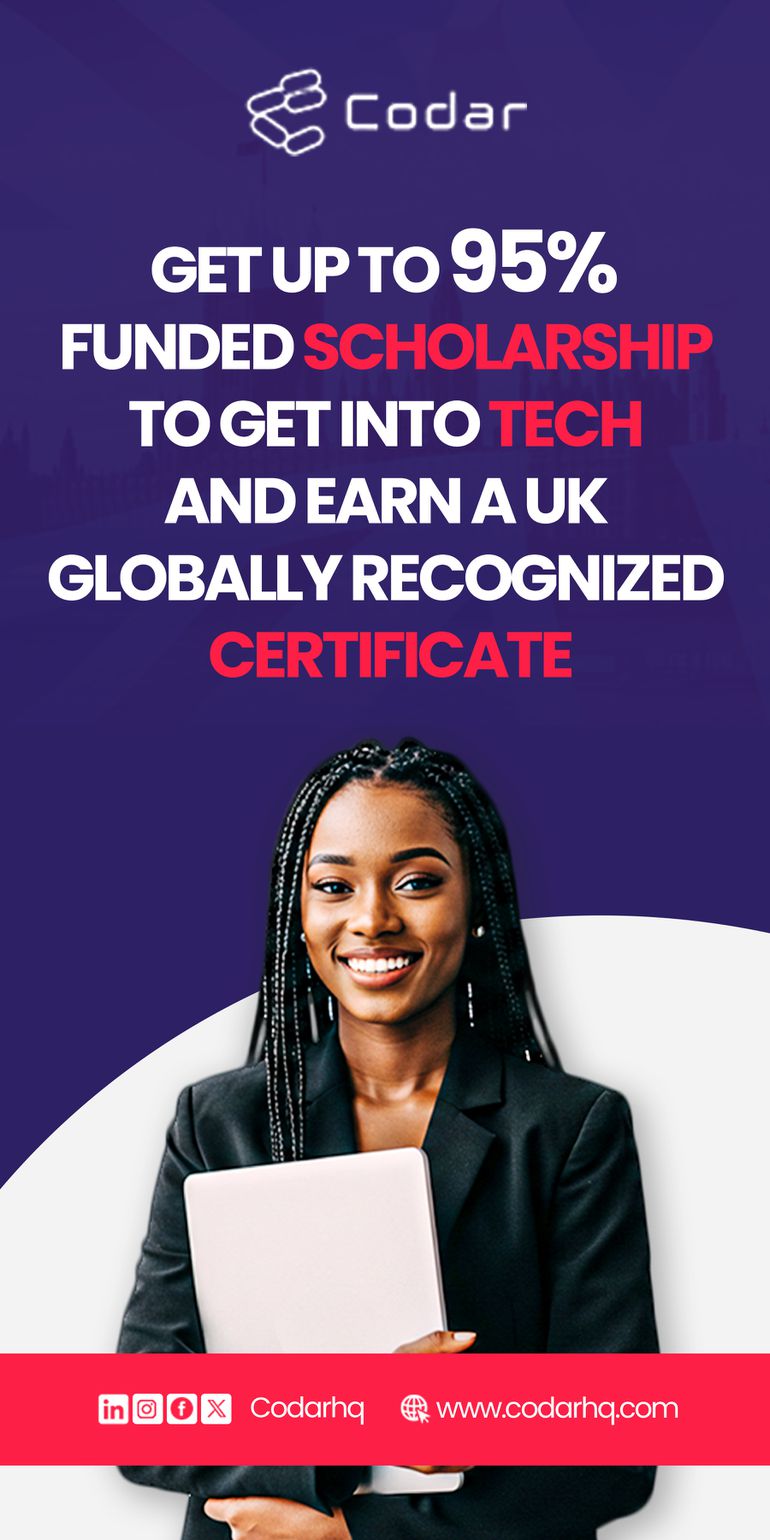 Codar Africa, a Forbes-recognized EdTech institution, has opened admissions for its 2025 academic year. To make high-quality tech education more accessible, Codar is offering scholarships covering up to 95% of tuition fees for eligible students.