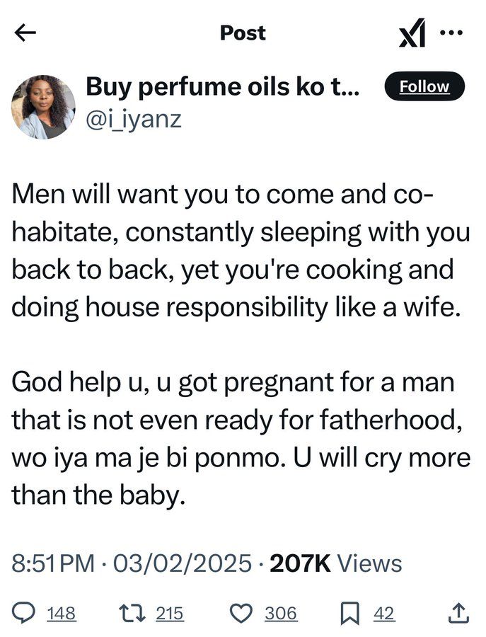 Women fired back, claiming that men actually want cohabitation more because they get all the perks—constant sex, home-cooked meals, and the responsibilities typically expected of a wife.