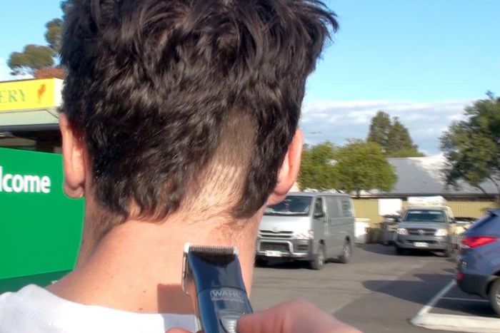 This joker was seen walking up to strangers and holding a clipper to people's head.