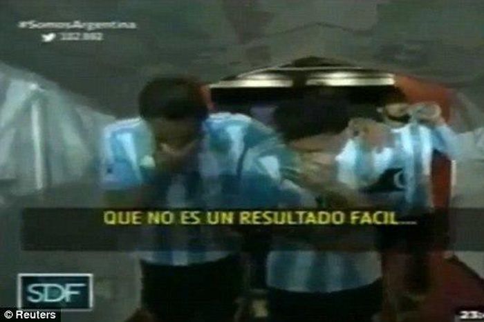 A video of the pair emerging from the dressing room, laughing together with their mouths covered with their hands has sparked outrage in Argentina after it was reported that they were undermining their manager Tata Martino's half-time team talk.