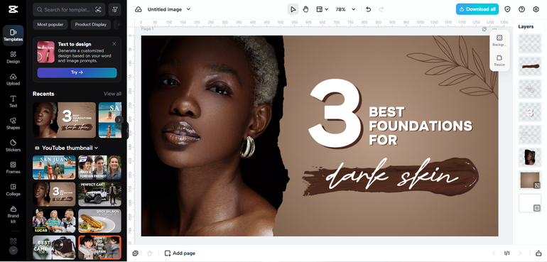 When you are satisfied, click "Download all" from the top right side. Next, choose "Download" and set the output size, image quality, and format according to Instagram’s requirements. You can also copy the file as PNG to upload directly to your Instagram account.