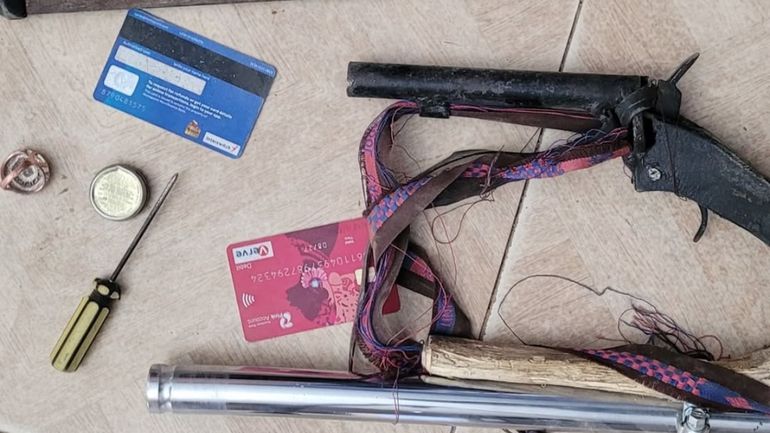 Recovered items included two fabricated pistols, two motorcycles, a machete, ATM cards, and a ring.