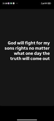 She wrote, “God will fight for my sons rights no matter what one day the truth will come out.