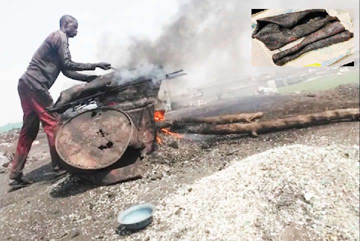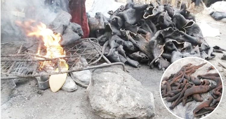 Roasting cowhide with tyres and plastics to obtain brown ponmo appears easier, cheaper and faster for processors as the method wouldn’t involve scrapping off the hair because the hair burns during roasting. This releases cancer-causing chemicals into the meat, making it unsafe for consumption.