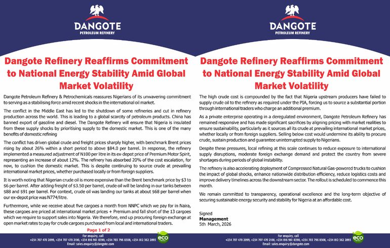 — Dangote Group (@DangoteGroup) March 5, 2026