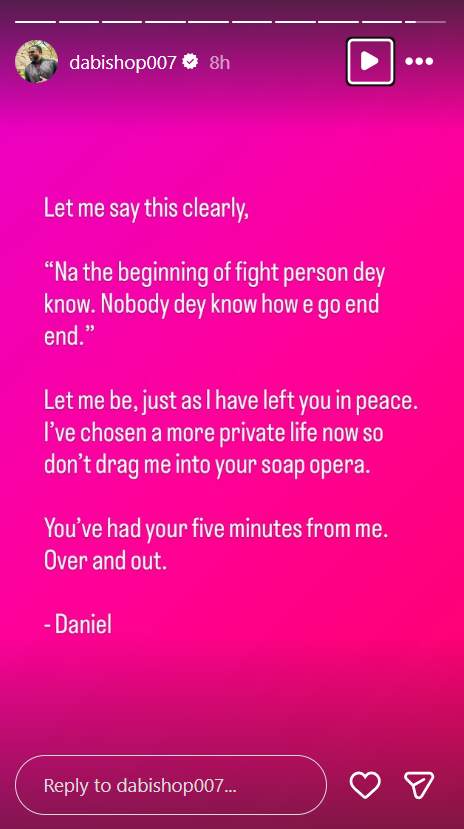 In his post, Daniel also revealed that the decision to end the marriage was not taken lightly, claiming it was made for his own well-being and that of his son.