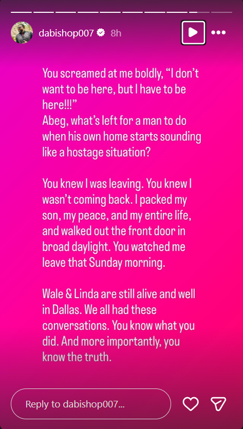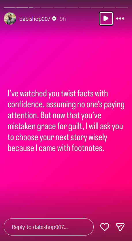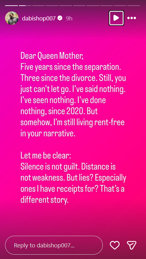The claims triggered a response from Ademinokan, who took to Instagram to set the record straight. Although he admitted to keeping silent since their separation, he expressed unwillingness to let "lies" take root.