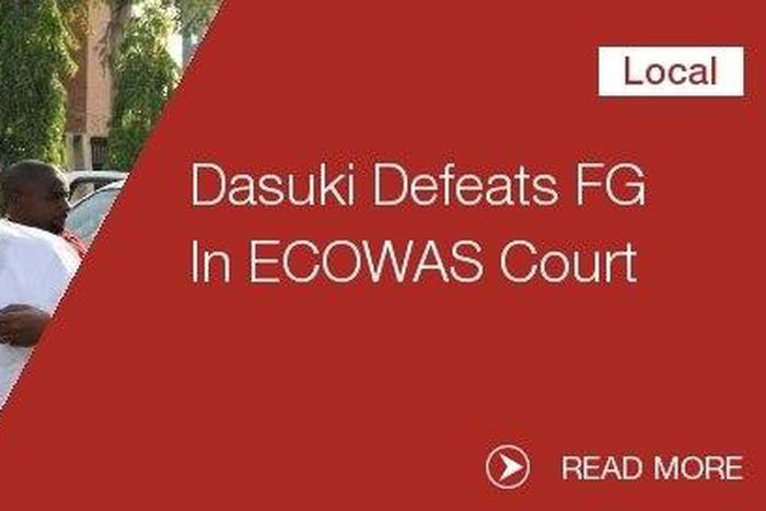 Dasuki's counsels, Robert Emukpoeruo and Wale Balogun haddragged the Nigerian government to the ECOWAS court over the invasion of their client's homes in Abuja, Kaduna and Sokoto and seizure of his properties without any court order.