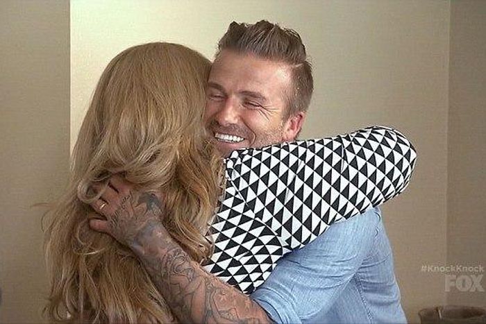 A Californian family were surprised to answer to a knock o the door to find Beckham standing at their front door.