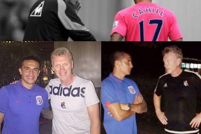 Former Everton manager David Moyes was reunited with his former player Tim Cahill in Shanghai.
