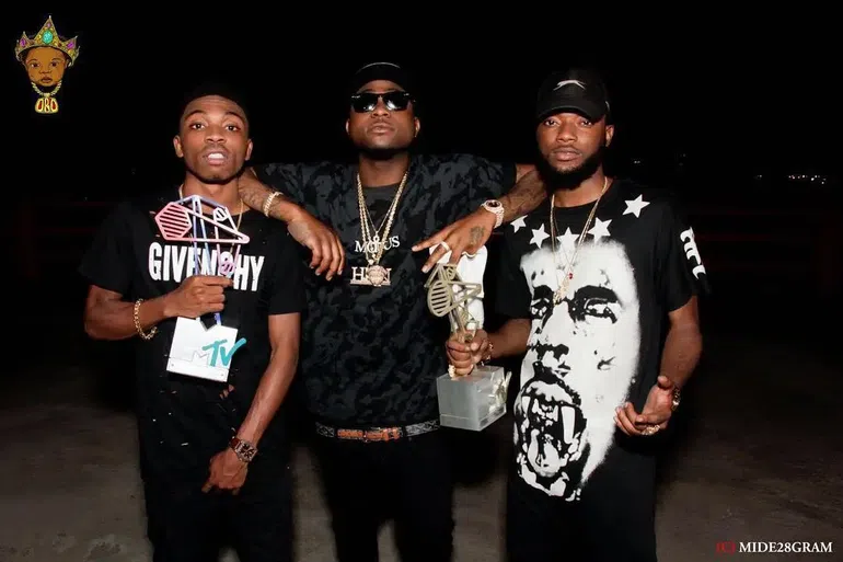 Davido poses with DMW signees Mayorkun and Dremo | Instagram