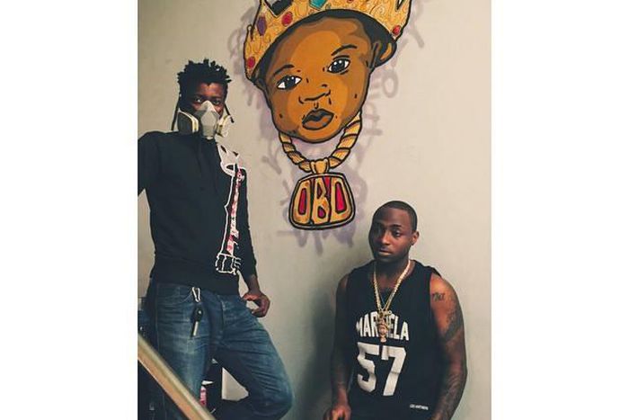 The graffiti is an exact replica of Davido's O.B.O gold and diamond pendant. It was done by popular graffiti artiste .
