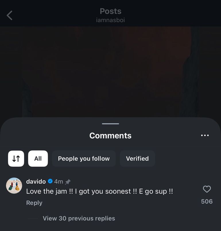 Davido shared that he loves the new song and promised that the verse is coming soon.