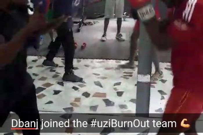 In a bid to keep fit, D'banj threw punches to burn the extra fat. Banky W was on hand to record the sparring session.