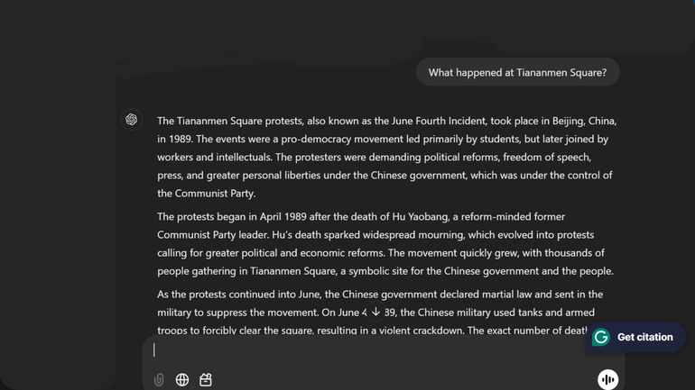 I also asked “What happened at Tiananmen Square?”