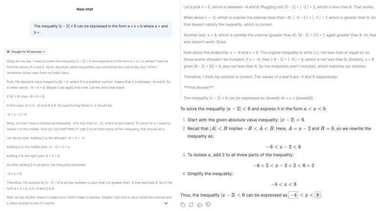 What stood out for me is that it shows you how it thinks, with its logic path in text before providing you with a final answer. I think this would work well as a study guide. While it might not have all the bells and whistles ChatGPT does, it’s built to handle complex topics.
