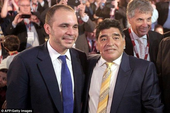 Maradona is in Jordan campaigning for one of Blatter's opponents Prince Ali Bin Al Hussein where he blasted Blatter.