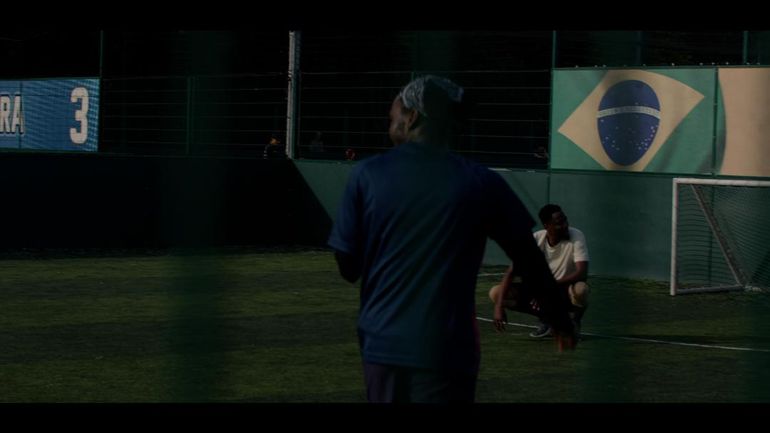 One of the work’s most effective gestures lies in its attention to minor social exchanges, many of which unfold on and around the football pitch. A passing remark between players. An awkward pause at the edge of the field. A fleeting look is exchanged before play resumes.