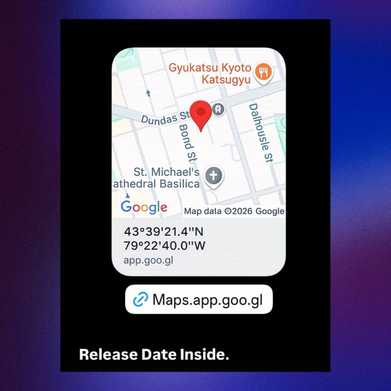 "Release Date Inside. 81 Bond Street Downtown Toronto," he wrote alongside photos of himself standing next to the makeshift monument.