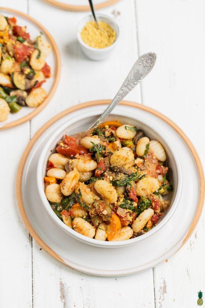 Easy Vegetable Gnocchi Swap whatever vegetables you have on-hand into this easy, vegan recipe. GET THE RECIPE Per serving (using potato gnocchi): 308 calories, 8.4 g fat, 561.8 mg sodium, 52.3 g carbs, 4.2 g sugar, 7 g protein Sweet Simple Vegan