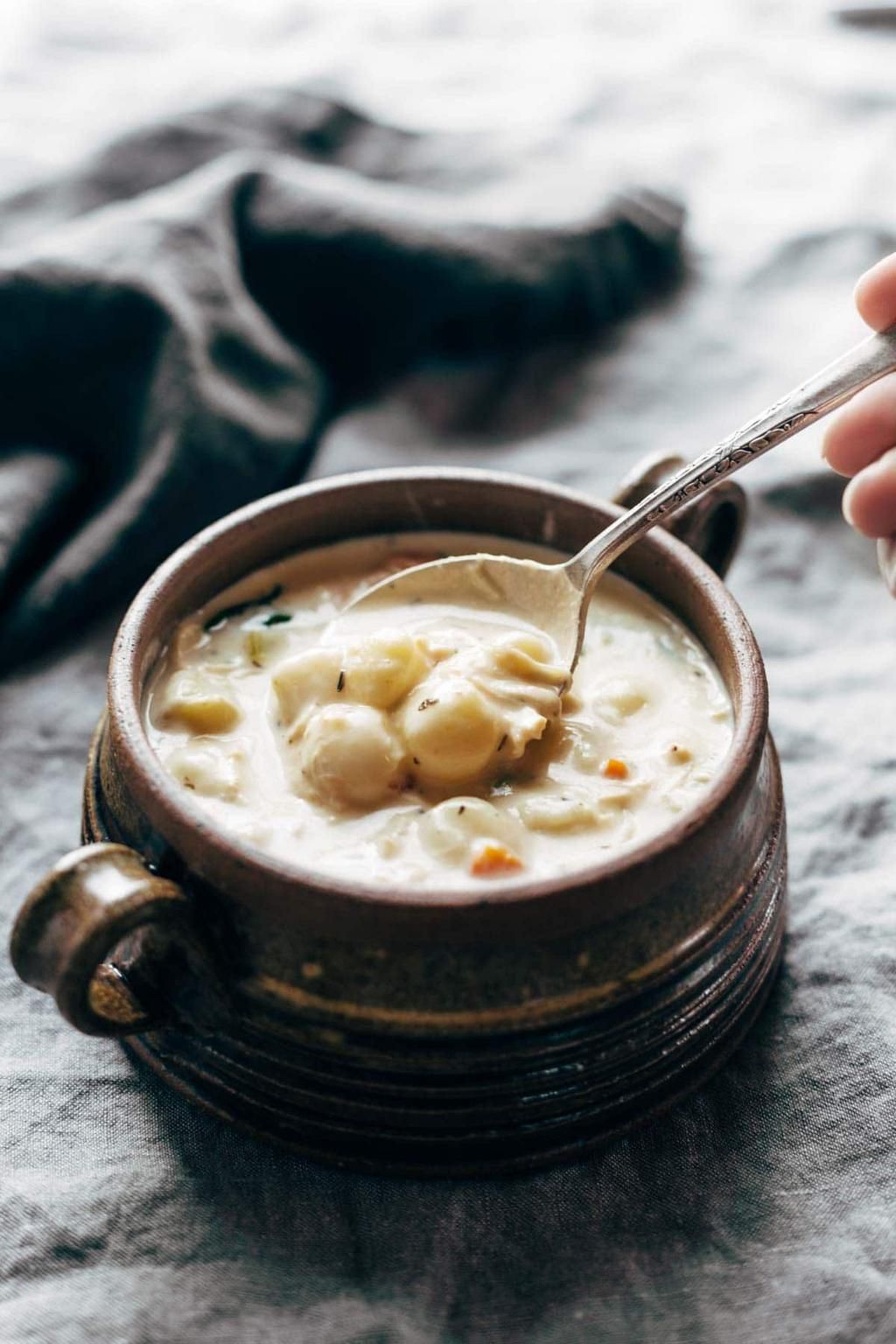 Crockpot Chicken Gnocchi Soup Soup season hack: Swap pasta and dumplings for cauliflower gnocchi, like in this recipe. GET THE RECIPE Per serving (using potato gnocchi): 282 calories, 5.3 g fat, 955 mg sodium, 38.5 g carbs, 6.3 g sugar, 0.7 g fiber, 19.4 g protein Pinch of Yum