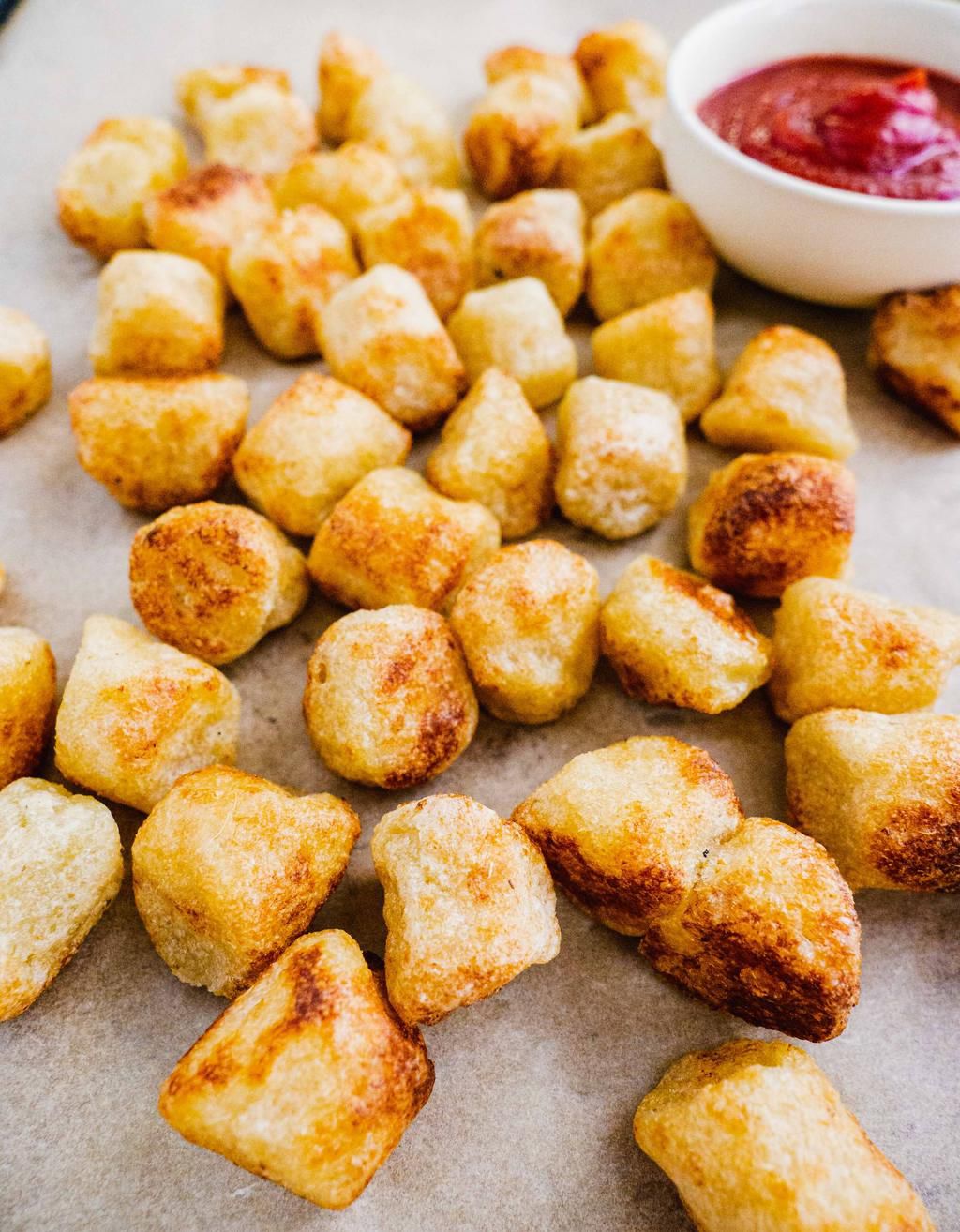 Crispy Air Fryer Cauliflower Gnocchi Did cauliflower gnocchi just become a game day app? Yes, they did. If you have an air fryer, you absolutely must try this. GET THE RECIPE Per serving: 140 calories, 3 g fat (0.5 g sat), 460 mg sodium, 22 g carbs, less than 1 g sugar, 6 g fiber, 2 g protein Shuangy's Kitchen Sink