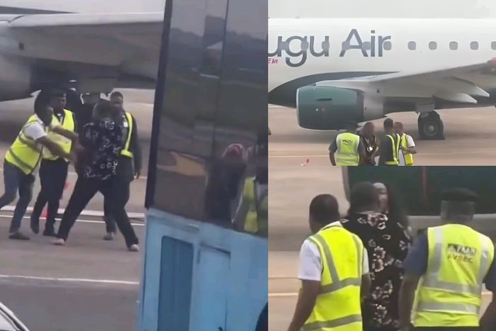 Unlike Kwam 1, this time the airport personnel were not having it. As 7 hefty men, dragged the man off the tarmac, before releasing him for a… pic.twitter.com/WL2iEtAmPe
